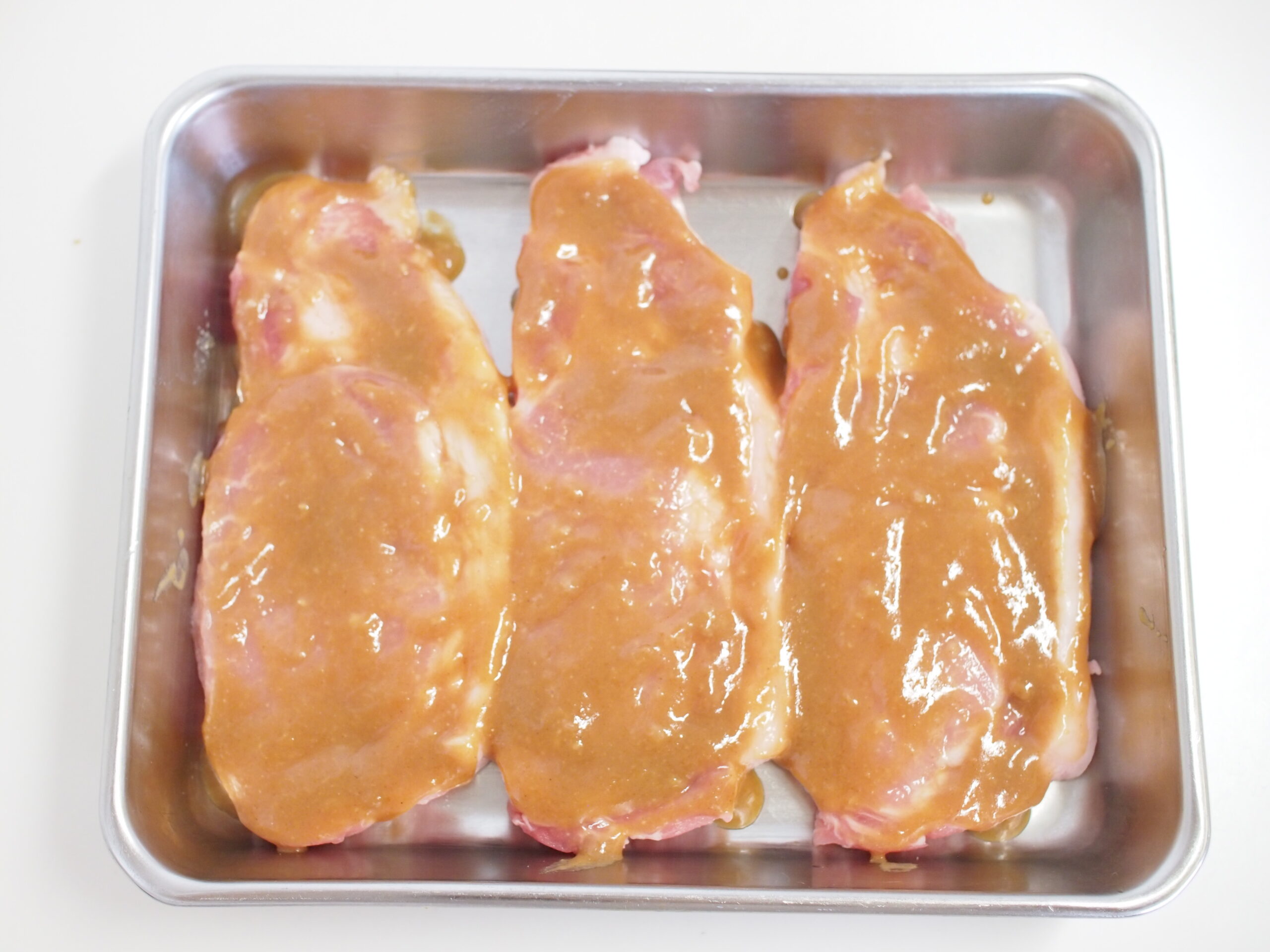 ③肉の両面にみそダレを塗り、ラップをして冷蔵庫に1時間以上置く。