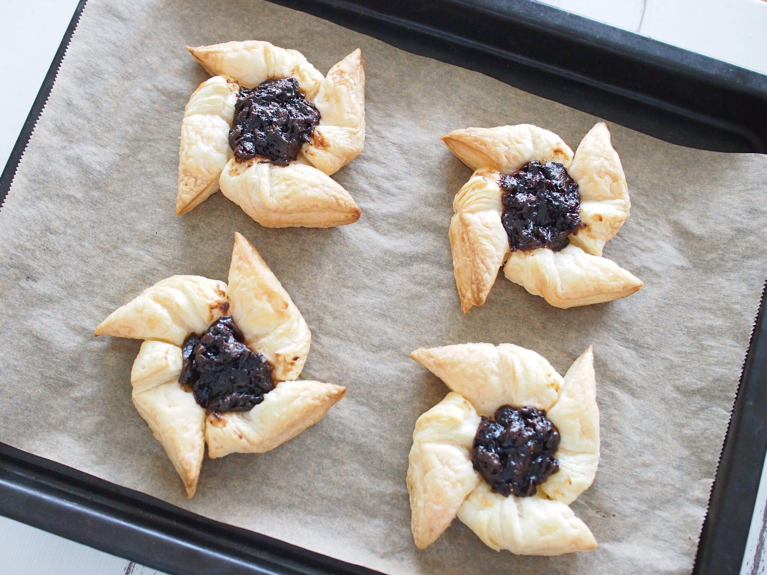 ヨウルトルットゥは、フィンランドのクリスマスシーズンに欠かせない伝統的なお菓子。正方形に切ったパイ生地を星形に折りたたみ、中央にプルーンジャムをのせたシンプルなパイです。