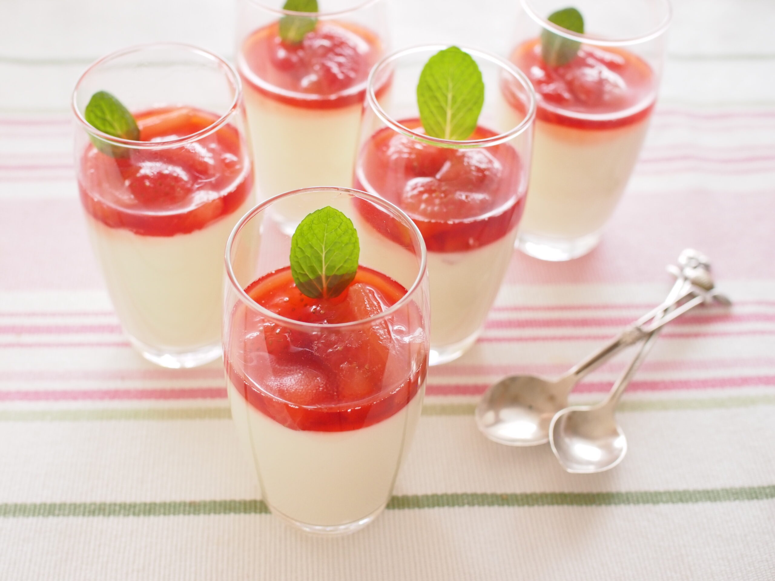 春らしいいちごソースを添えた、さっぱりとした口当たりの豆乳ベースのパンナコッタ。簡単映えスイーツです。