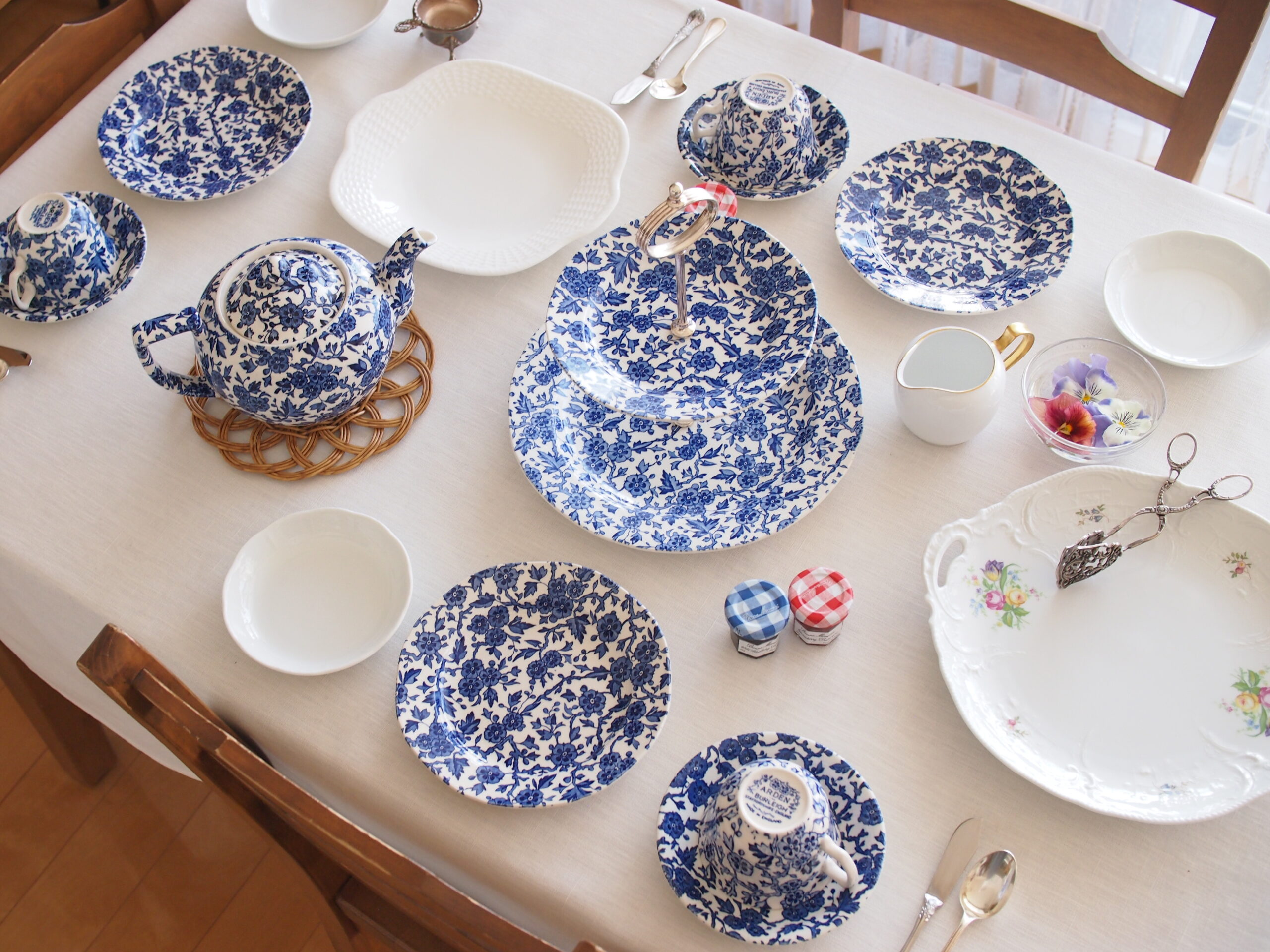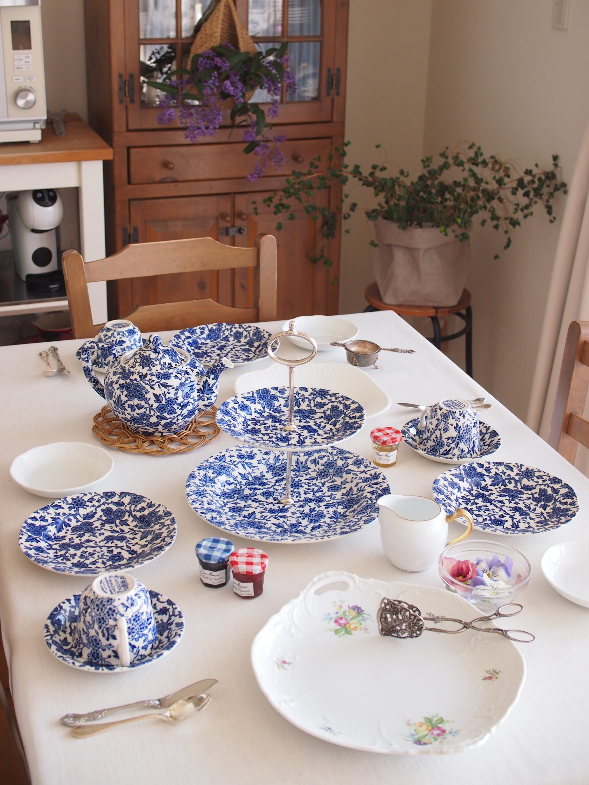 しまい込んでいた大好きな英国バーレイ社のケーキスタンドとティーセットをフルでを使いたかったので、夢が叶って嬉しいです。いつもは安い茶渋のついた食器を使っているので(笑)