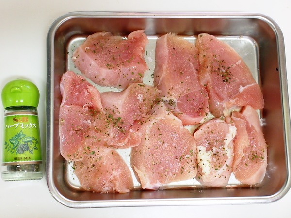 鶏肉は味が淡泊なので下味をしっかりつけることとがおいしさのポイント。香りづけにハーブやカレー粉(クミンでもOK)をふって焼くとさらに風味UPしますよ♪