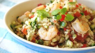 爽やかミント風味&プチプチ食感♪ 玄米と海老のタブーレ