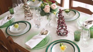 クリスマスレッスンのテーブルとヘーゼルアトラス社のウランガラス。