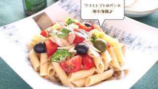 Edge新作パスタ皿に盛り付け♪ ツナとトマトのペンネ地中海風