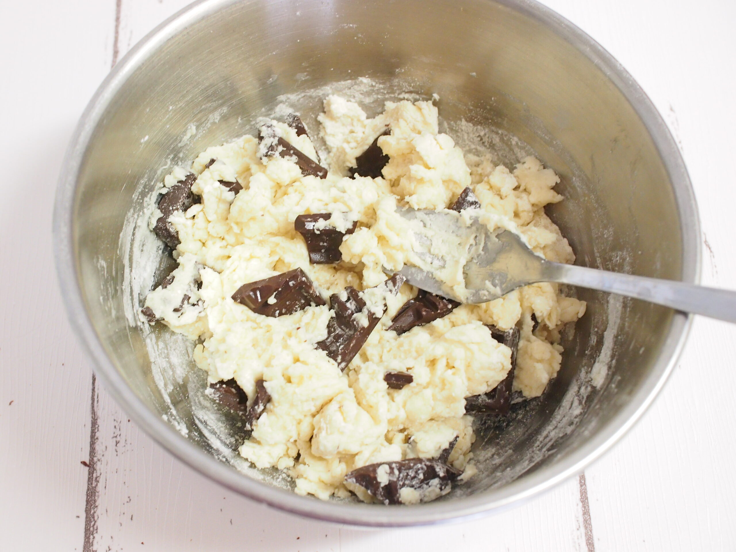 ③手で割ったチョコレートを加えて軽く混ぜる。